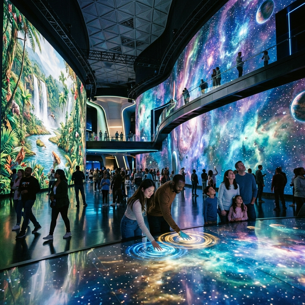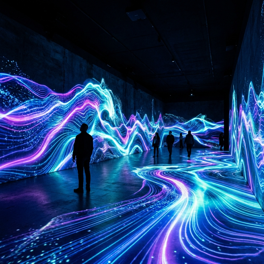 'PADO'λ μ΄λ¦μμ λκ»΄μ§λ― νλμ²λΌ λ°λ €μ€λ μλμ μΈ λ―Έλμ΄μνΈμ ν₯μ°μ κ³΅κ° μ 체μ ꡬνν΄ λΈ μ μκ΄μ λλ€. λμμ΄λ―Έλ₯΄λ λ¨μν μμμ λ²½λ©΄μ ν¬μ¬νλ κ²μ λμ΄, κ΄λκ°μ΄ λ§μΉ κ±°λν μμ μν μμΌλ‘ μ§μ κ±Έμ΄ λ€μ΄κ° λ―ν νμμ μΈ κ³΅κ° λͺ°μ κ°μ μ 보μμ΅λλ€. λΉκ³Ό μ리, κ·Έλ¦¬κ³ κ³΅κ° μ μ²΄κ° νλμ μ 기체μ²λΌ λ°μνλ©° κ΄λκ°μ μ€κ°μ μκ·Ήνλ νμ μ μΈ κ²½νμ μ€κ³ν κ²μ΄μ£ .